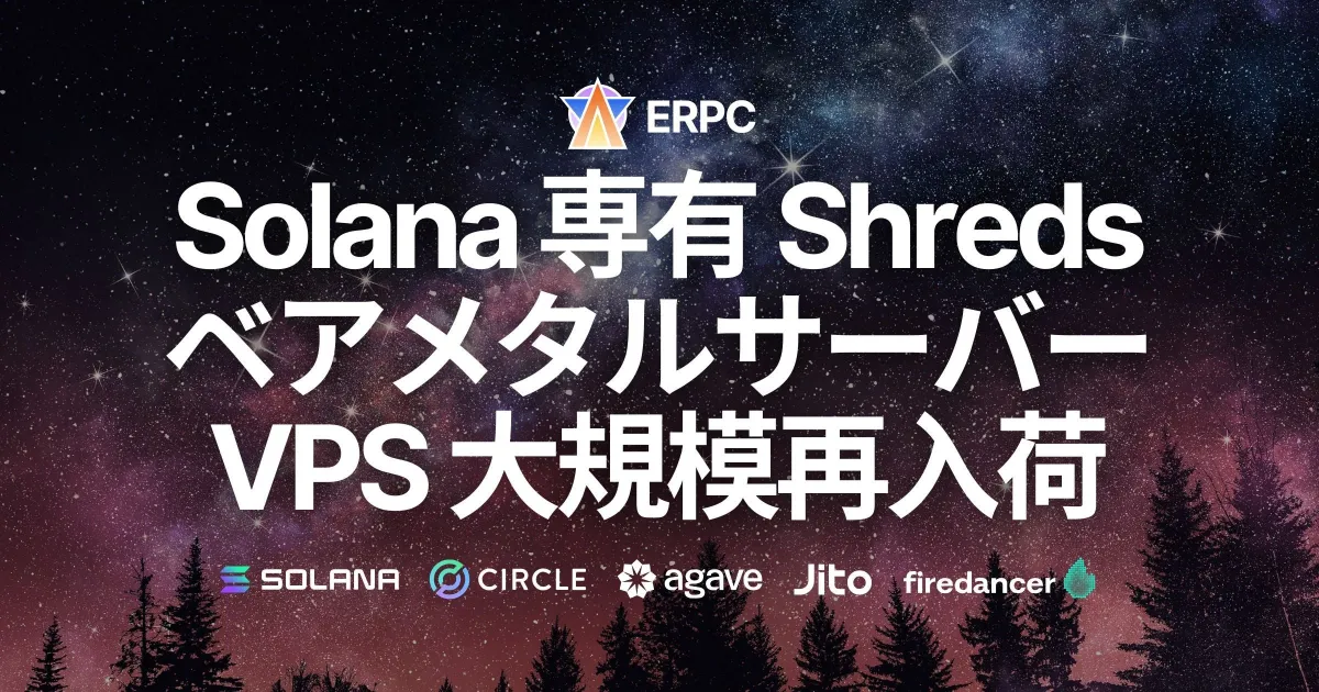提供元のELSOUL LABO B.V.(本社:オランダ・アムステルダム、CEO:川崎文武)が、Solana専用のベアメタルサーバー、プレミアムベアメタルサーバー、専有ShredStream、EPYC VPSを全リージョンにて大規模に再入荷しました。これにより、今まで完売し続けていたこのラインナップが、各リージョンで随時利用可能となります。