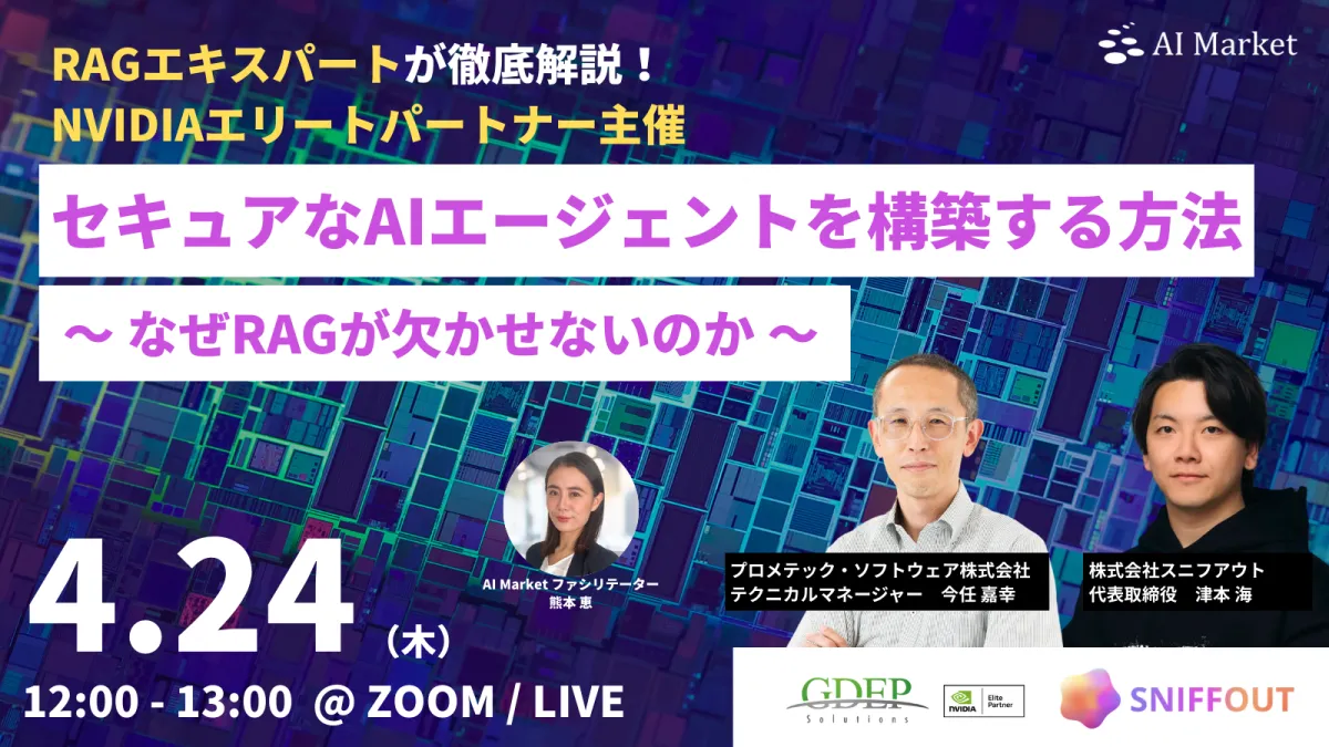 2025年4月24日、AIエージェントに関する無料ウェビナーが開催されます。このイベントでは、AIエージェントの構築に欠かせないRAG(検索拡張生成)技術について焦点を当て、具体的な導入事例や成功のポイントが解説されます。主催は、AIサービス選定のコンシェルジュサービスを手掛けるBizTech株式会社です。