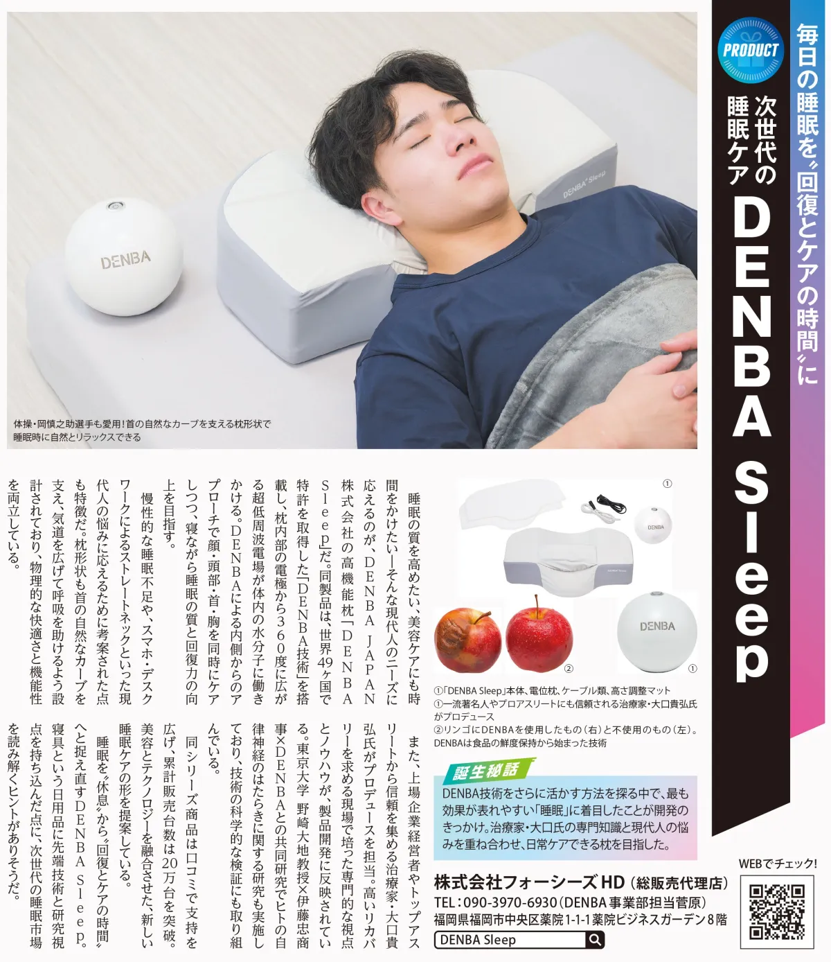 3月4日発行の「日経トレンディ」に、福岡市に本社を置く株式会社フォーシーズHDが展開する「DENBA Sleep」の広告が掲載されました。この製品は、特許技術を駆使して生み出されたものであり、現代人の睡眠に対する悩みを解決するために開発されました。特に30代から50代のトレンドに敏感な読者層が多い「日経トレンディ」において、睡眠の質向上を目指す広告は非常に適したものと言えるでしょう。