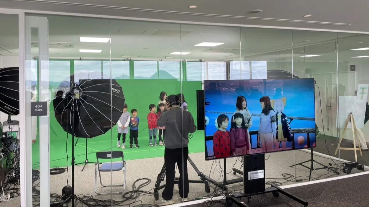VLSは、東京都調布市に本社を置く企業で、日活調布撮影所内のグリーンバックスタジオを拠点に、映像制作やデジタルコンテンツ制作などを手がけています。同社は、イベント会場である善通寺市役所内の会議室にリアルタイムCG合成システムを持ち込み、来場者参加型の体験ブースを設営しました。
