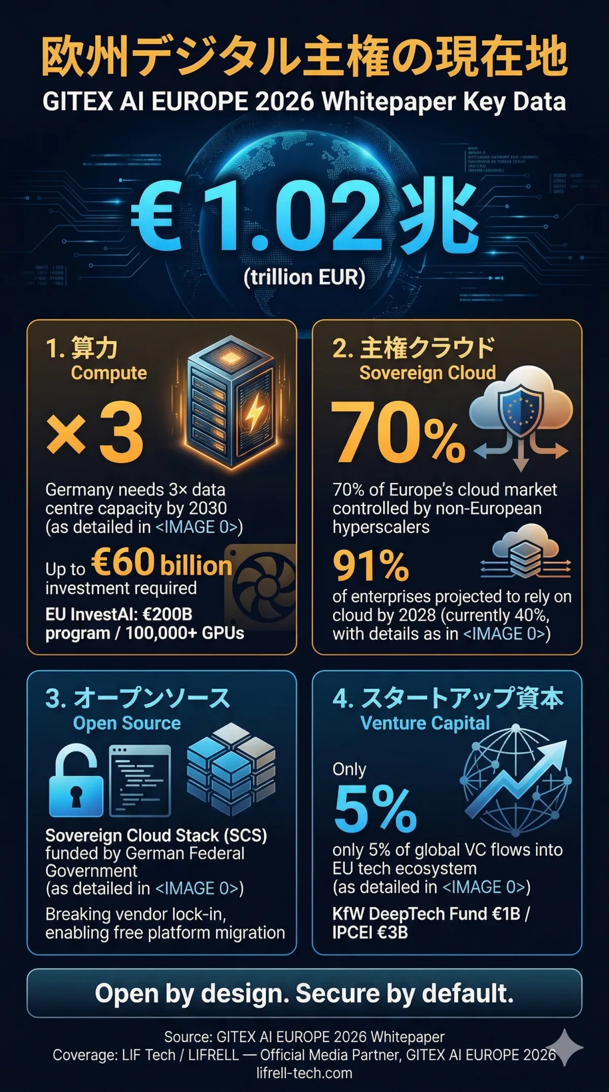 GITEX AI EUROPEが発表したホワイトペーパーでは、欧州のクラウド市場の約70%が非欧州系ハイパースケーラーによって支配されていることが示されており、これは地域の技術独立性が問われる重大な状況を反映しています。
