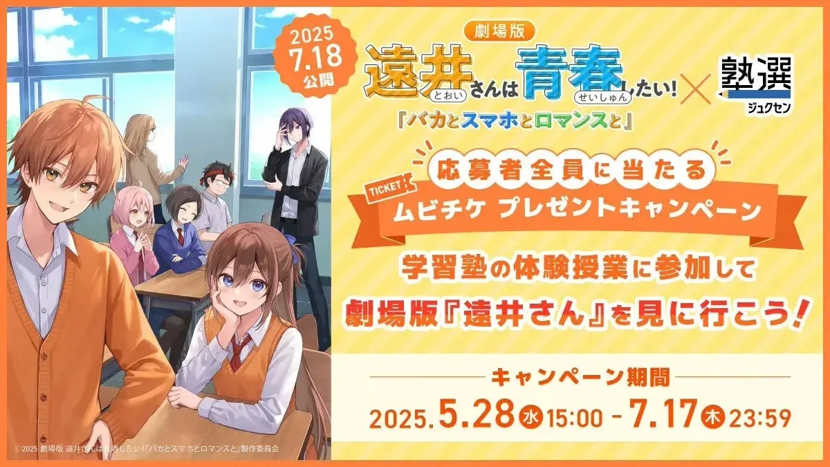 日本最大級の学習塾検索サイト『塾選』を運営する株式会社DeltaXが、2025年5月28日から、学生に向けた特別なキャンペーンを開始します。このキャンペーンでは、塾の体験授業に参加すると、映画の鑑賞チケットがもれなくもらえる特典が用意されています。さらに、公式Xをフォローすることで、特別な抽選も実施。これは、今話題の映画『遠井さん』に関連した魅力的な企画です。