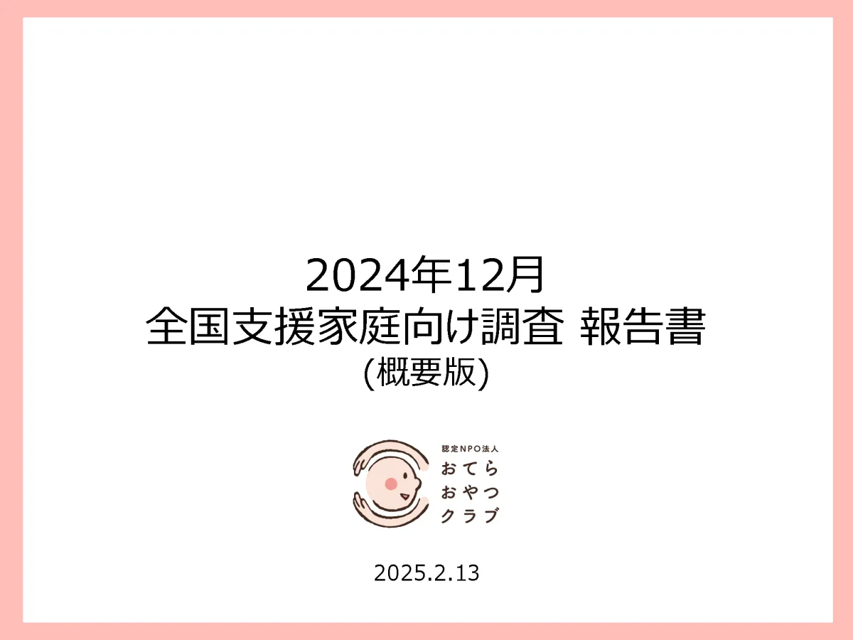 おてらおやつクラブは、全国のひとり親家庭を支援するため、直接的な支援を受ける世帯を対象に3,027世帯に対してアンケートを実施しました。この調査の目的は、家庭を取り巻く環境や支援への意識、実態を把握し、今後の活動の参考とすることです。この報告書には、生活苦を抱える親たちからの声が反映されています。