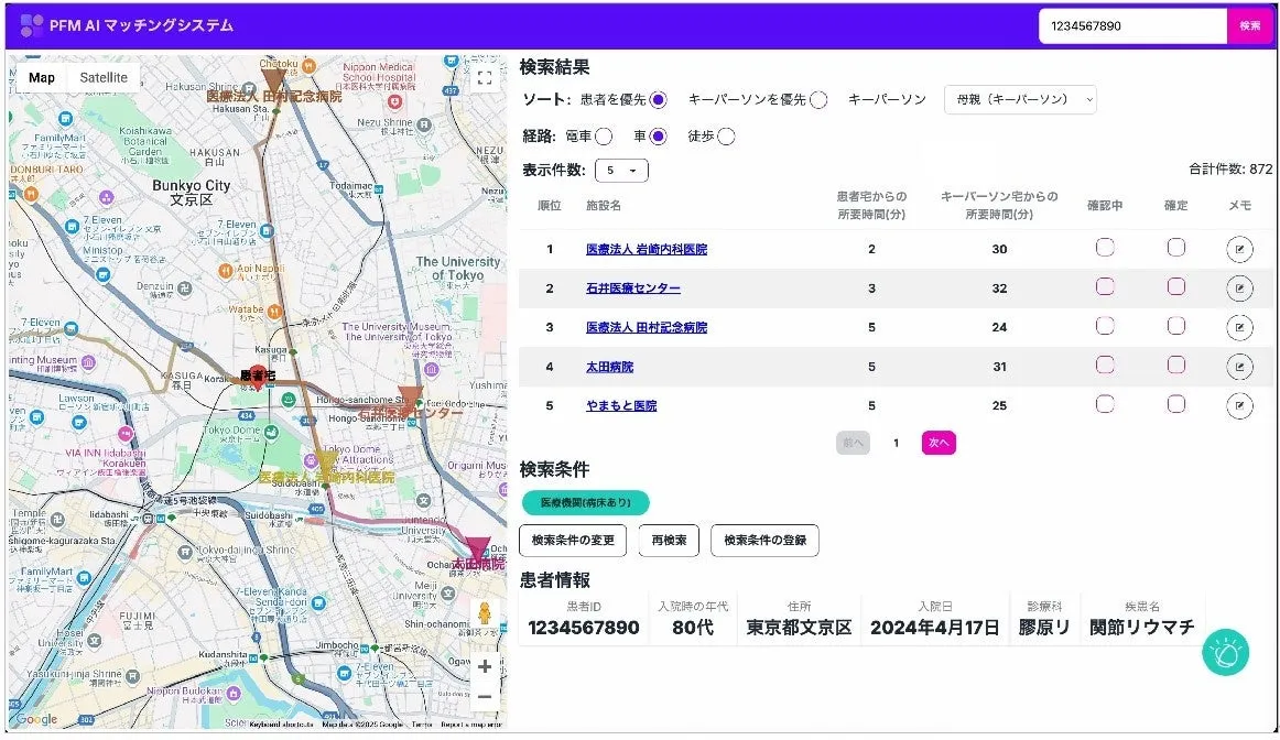 - - 情報共有の効率化:選定された施設や候補施設のメモ情報をダッシュボードで共有することで、医療従事者間のコミュニケーションを円滑に。