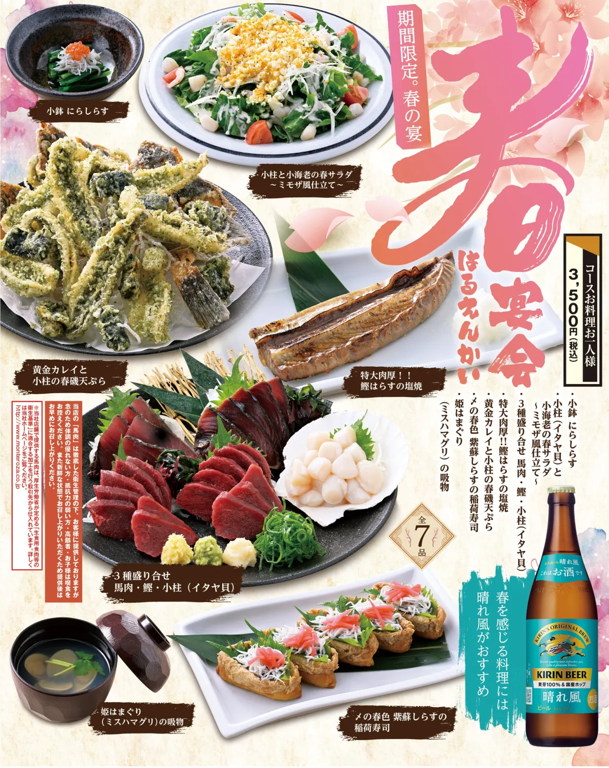 - - キリン「晴れ風」との組み合わせ: 晴れた日にぴったりのビールと共に、黄金カレイのふっくら天ぷらを楽しむことで、さらに一層春を感じられます。
