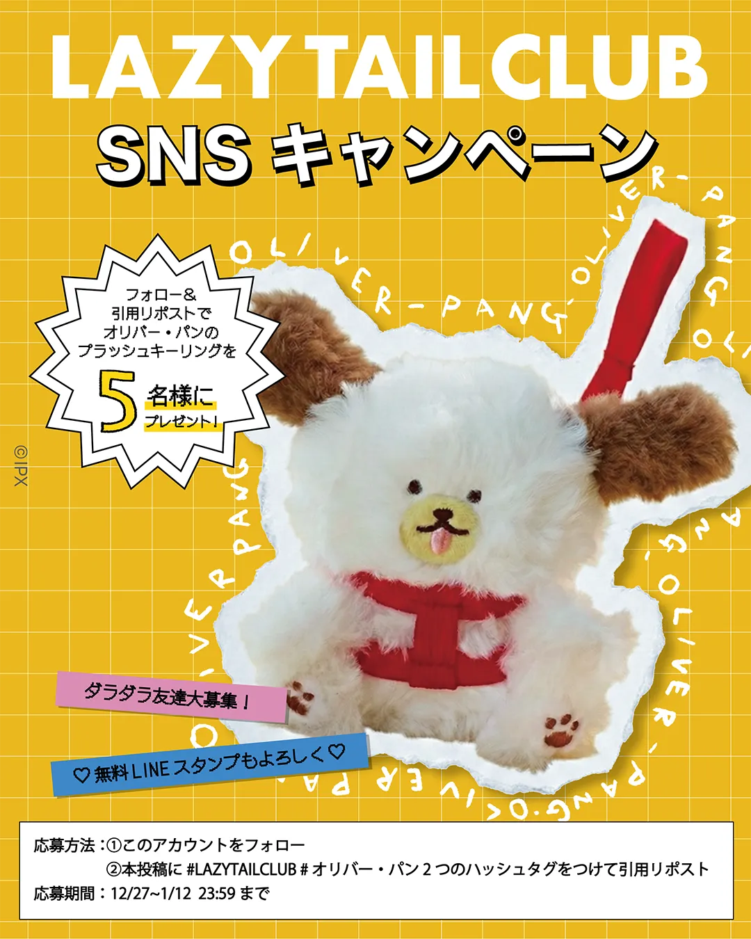 日本のLINE FRIENDSファンに朗報です!LINE Friends Japan株式会社が2025年12月27日より、新キャラクター「LAZY TAIL CLUB」を発表し、特別なSNSキャンペーンを実施します。このキャンペーンでは、オリバー・パンデザインのキュートなキーリングが、抽選で5名に当たるという豪華なプレゼント企画もあります。