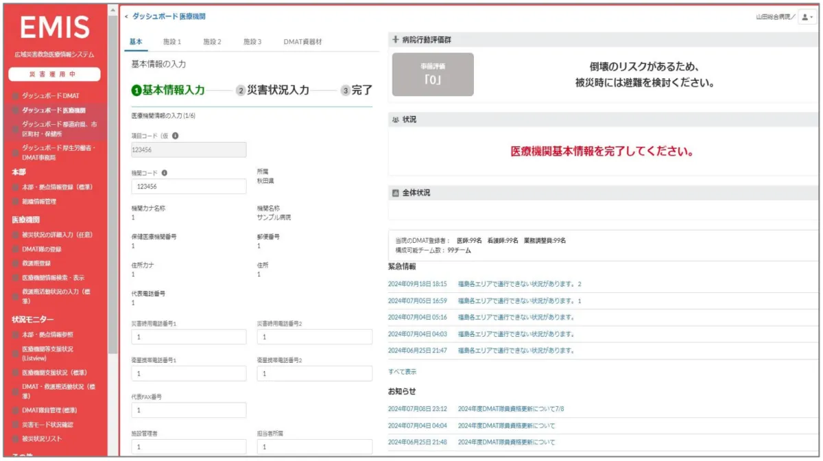 EMISサービスは、平常時には医療機関の情報管理やDMATの隊員資格の更新など、さまざまな準備作業を行います。災害発生時には、これらのモードが迅速に切り替わり、被災情報の報告や隊員活動の状況がリアルタイムで共有されます。これにより、関係者は必要な判断を迅速に下すことが可能となり、円滑な医療対応が実現します。