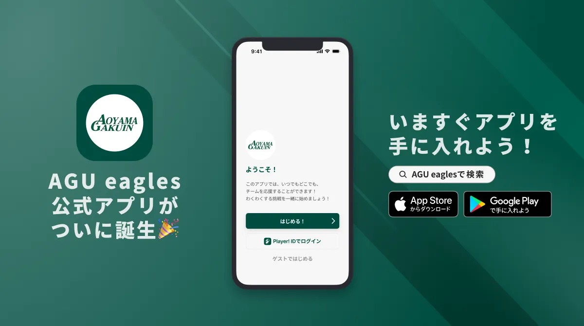 「AGU eagles」と検索すると、AppStoreまたはGooglePlayで簡単にダウンロードできます。また、指定のリンクからも直接取得可能です。