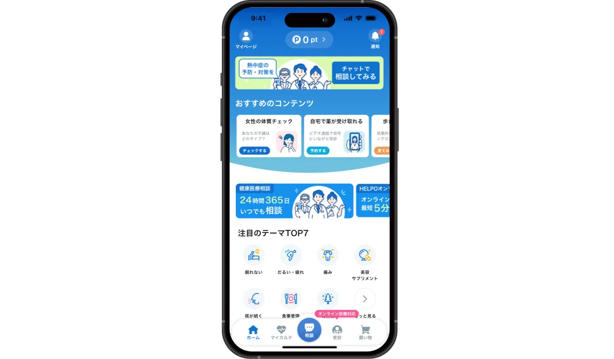 『HELPO』は、医療従事者に24時間365日相談できるチャット機能、そして自宅に居ながら受診できるオンライン診療機能を搭載しています。名称は“Healthcare in Pocket”の略で、常に手の届くところに健康支援があることを意味しています。このアプリを通じて、未病段階からのサポートを受けることが可能となります。