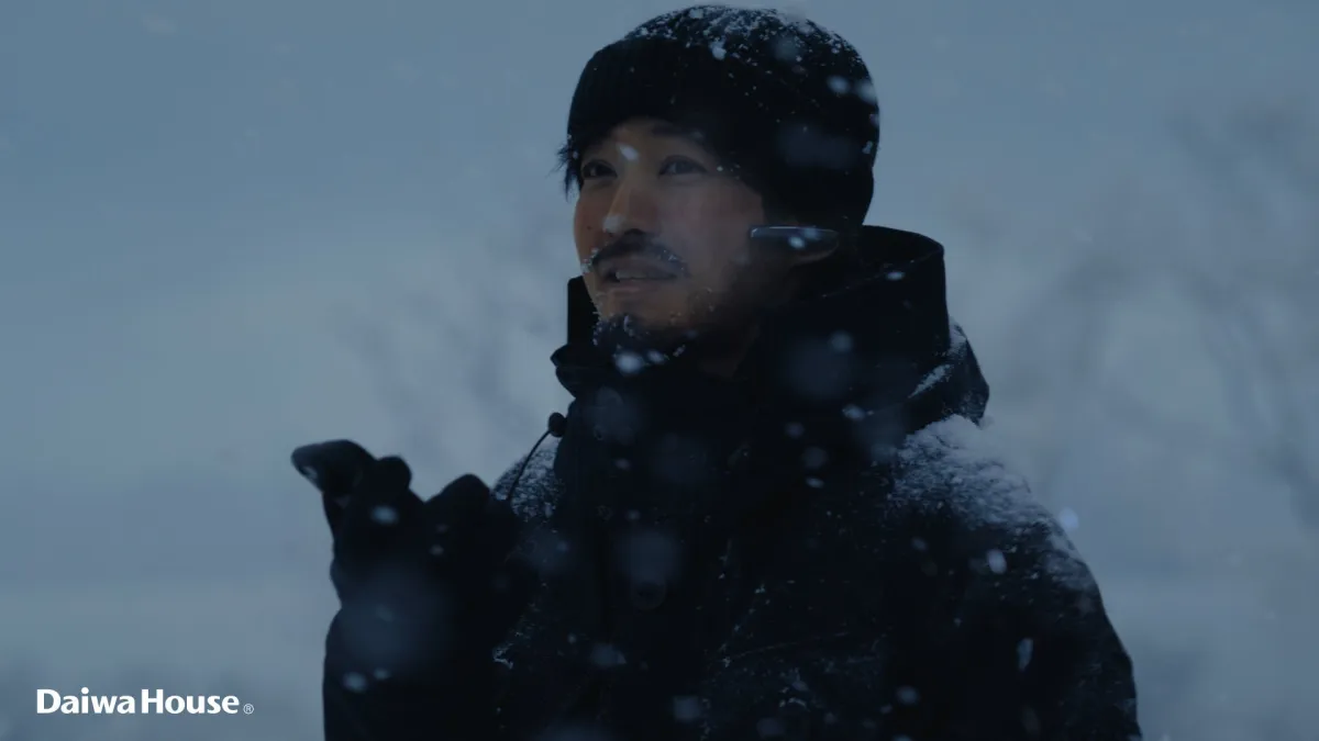 CMのストーリーは、降りしきる雪の中を歩く松坂桃李さんから始まる。イヤホンを通じて誰かと会話をしており、「この国の夏はどうなっている?」、「あの夏の猛暑を忘れたのか?」と、夏の厳しい暑さについて語り合う場面が印象的である。雪が降り積もる中でのこの会話が皮肉なほど対照的で、視聴者に強いメッセージを伝えている。