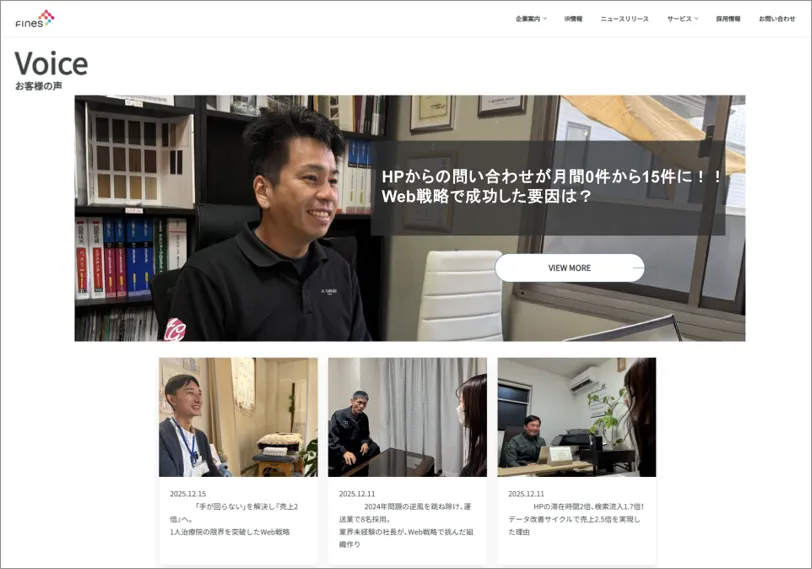 株式会社ファインズ(所在地:東京都港区、代表取締役社長:三輪 幸将)は、これまでに導入した企業の成功事例を新たにホームページで公開しました。これにより、同社の提供する「Videoクラウド」を活用した具体的な施策がどのように企業の成長に貢献しているのかが明らかになっています。ファインズのパーパスである「企業と地域社会の未来に、テクノロジーの追い風を。」を体現する事例が多く、特に中小企業が直面する採用や集客の課題を解決することが期待されています。