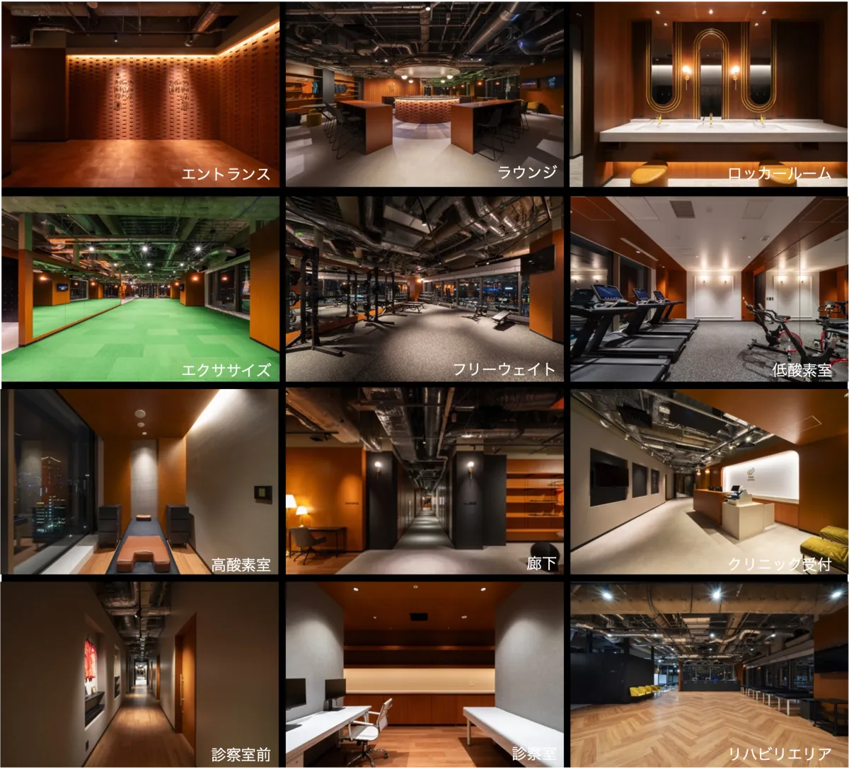 エントランスはレンガに囲まれた異空間で、利用者はまるでリゾート施設にいるかのような感覚を享受できます。内部には、ラウンジやエクササイズスペース、フリーウェイト、さらには低酸素室や高酸素室など、様々な機能が備わっています。また、「究極の待ち時間ラウンジ」や、「SPAのような高級感が漂う鍼灸施設」も設置されており、各スペースが独自の魅力を放っています。