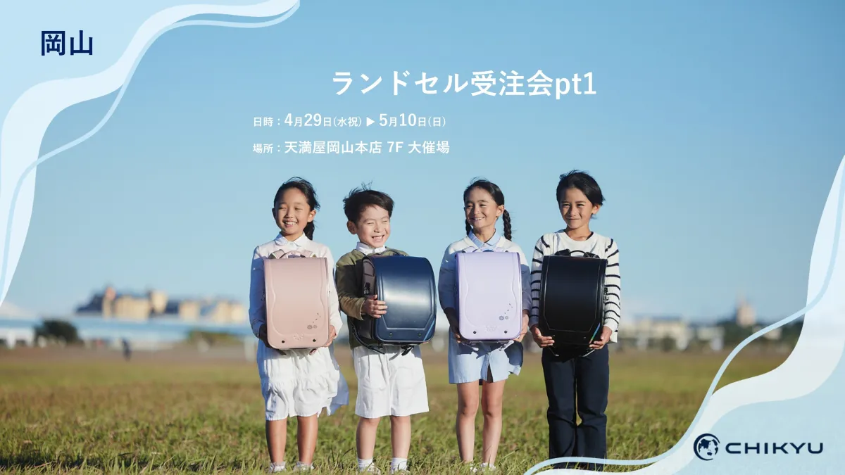 ランドセルの企画・販売を行うCHIKYU株式会社が、岡山・天満屋岡山本店で「ランドセル受注会pt1」を開催します。このイベントでは、NASAによって開発された衝撃吸収材、テンプフォーマ®を使用した地球NASAランドセル®が約40点展示される予定です。また、予約は不要で、家族で気軽に楽しむことができます。