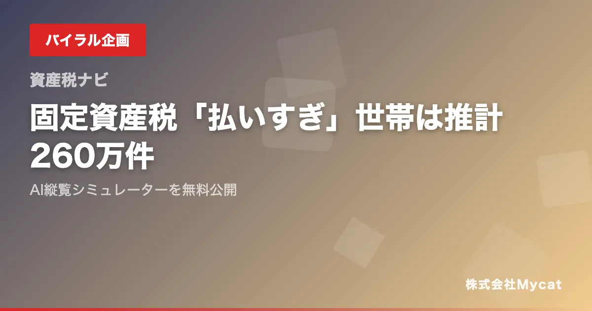 株式会社Mycatが新たにリリースした「AI縦覧シミュレーター」は、固定資産税の評価額を簡単にチェックできる画期的なツールです。このシミュレーターを使えば、自宅の所在地や面積、築年数を入力するだけで、AIが近隣の相場をベースにその評価額の妥当性を判断してくれます。毎年、固定資産税の納税通知書が届く中で、「自分の評価額は適正なのか?」と疑問に思う方も多いはず。しかし、実際には評価額に疑問を持ちながらも、確認する手段がないためにそのまま支払っている方が大勢存在します。