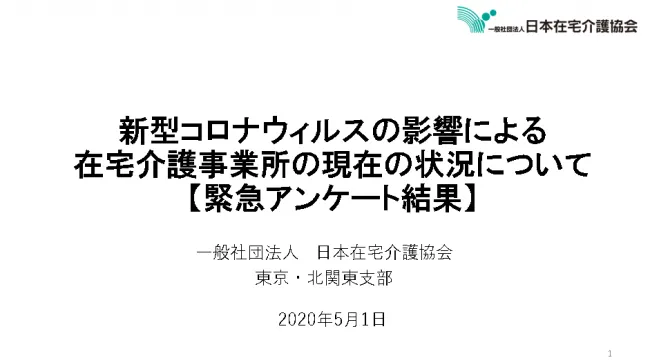 日本在宅介護協会東京・北関東支部は、2020年4月に新型コロナウイルスが在宅介護業界に与えた影響についての緊急アンケートを実施しました。対象は支部に所属する事業者で、アンケートには108事業者が回答。特に経営管理層や現場の介護専門員から多くの貴重な意見が寄せられました。