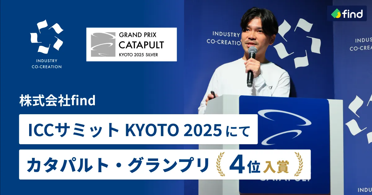 株式会社findは、2025年9月に京都で開催された「ICCサミットKYOTO 2025」において、「CATAPULT GRAND PRIX」にて見事4位に入賞しました。このイベントは「ともに学び、ともに産業を創る」ことをテーマに、多くの参加者が集まり、業界の最新トレンドやイノベーションについての情報共有が行われる重要なカンファレンスです。