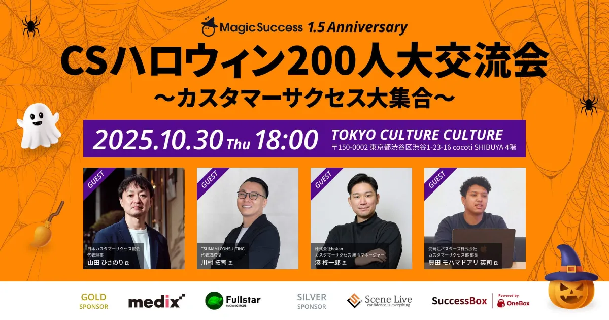 この特別な交流会は、カスタマーサクセス業務に従事する方々にとって、新たな出会いや学びの場となります。ハロウィンのテーマを楽しみながら、業界内のネットワーキングを深めるチャンスをお見逃しなく!