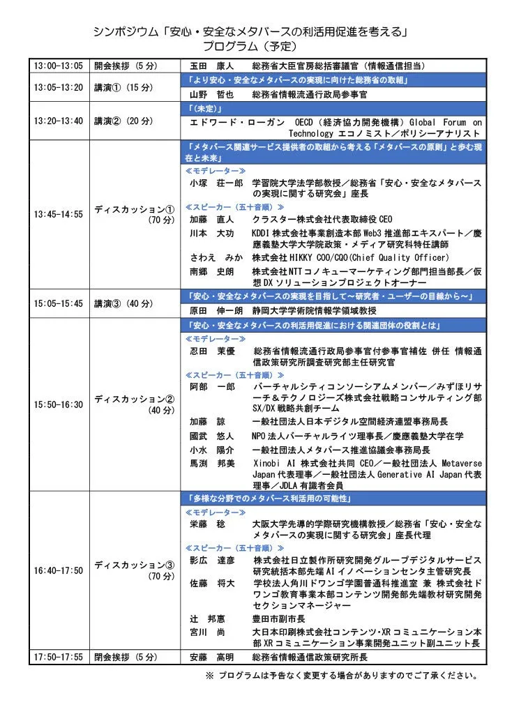 - - シンポジウム名称: 安心・安全なメタバースの利活用促進を考える