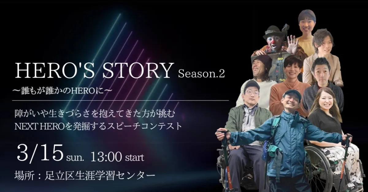 2026年3月15日、東京都足立区の生涯学習センター講堂にて、障がい当事者によるスピーチコンテスト『HERO’S STORY』が開催されます。このイベントは、障がいのある方が自身の経験や想いを語ることで、社会に新しい視点を提供し、希望をもたらすことを目的としています。テーマは「誰もが誰かのHEROに」。