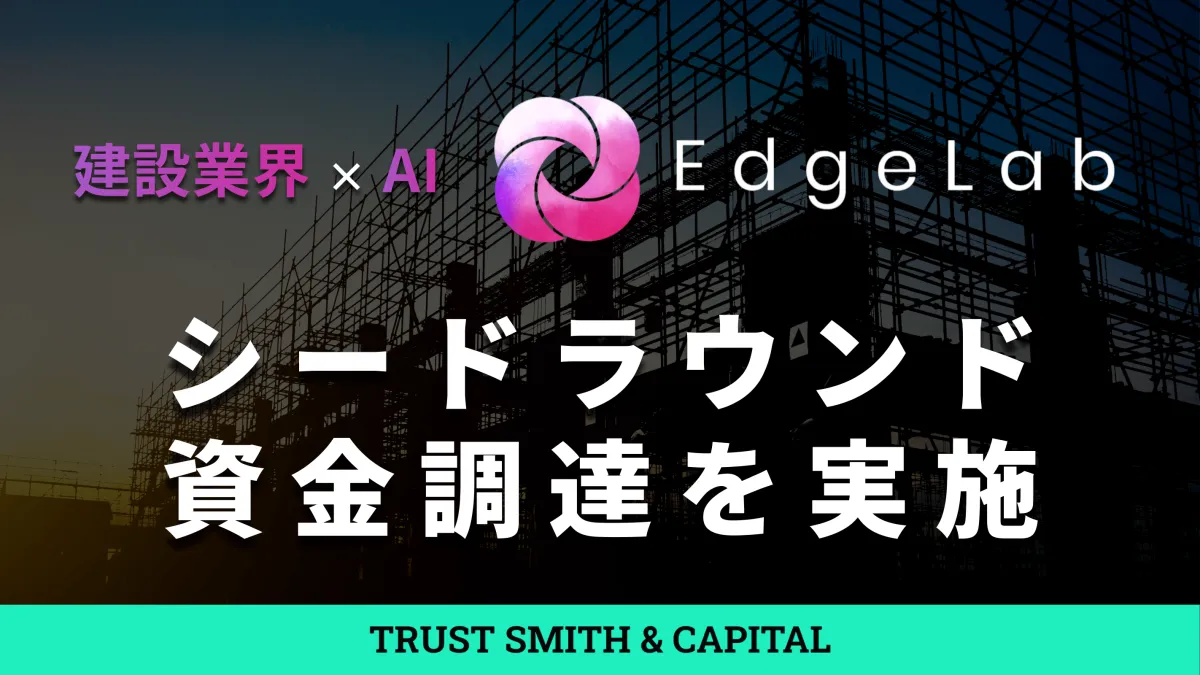 東京大学の出身者が立ち上げた株式会社EdgeLabは、建設業界に特化したAIシステムの開発を行っています。このたび、シードラウンドにおいてシード特化VCであるTRUST SMITH & CAPITALを引受先とし、資金調達を行ったことを発表しました。これにより、EdgeLabは今後さらに建設業界におけるAIシステムの普及を加速し、自社プロダクトの開発と優秀な人材の採用を加強していく予定です。