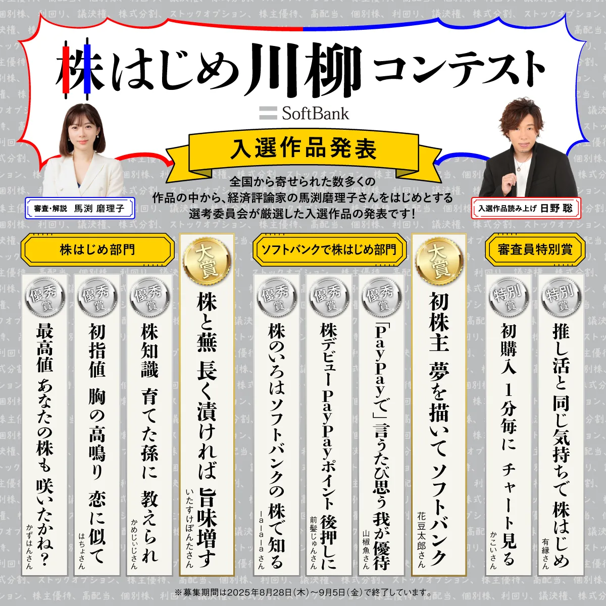 ソフトバンク株はじめ川柳コンテスト、入選作品発表!