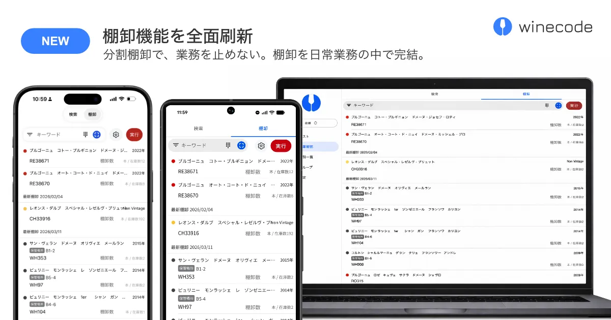業務用ワイン管理アプリ「winecode」が棚卸機能を全面刷新