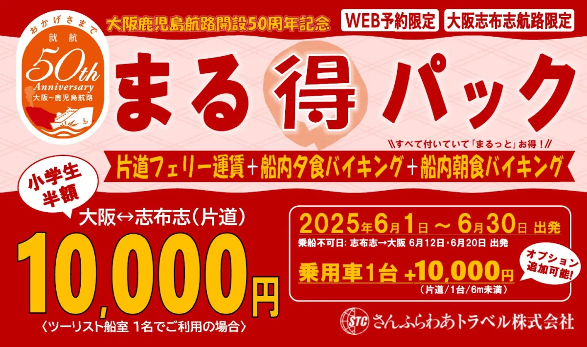 今年で大阪/鹿児島航路が50周年を迎えるにあたり、さんふらわあトラベル株式会社が特別な「まる得パック」を発売しました。これにより、お手頃価格で船旅を楽しむ新たな機会が提供されており、帰省や旅行だけでなく、カジュアルなクルーズ体験も気軽に味わえるようになりました。