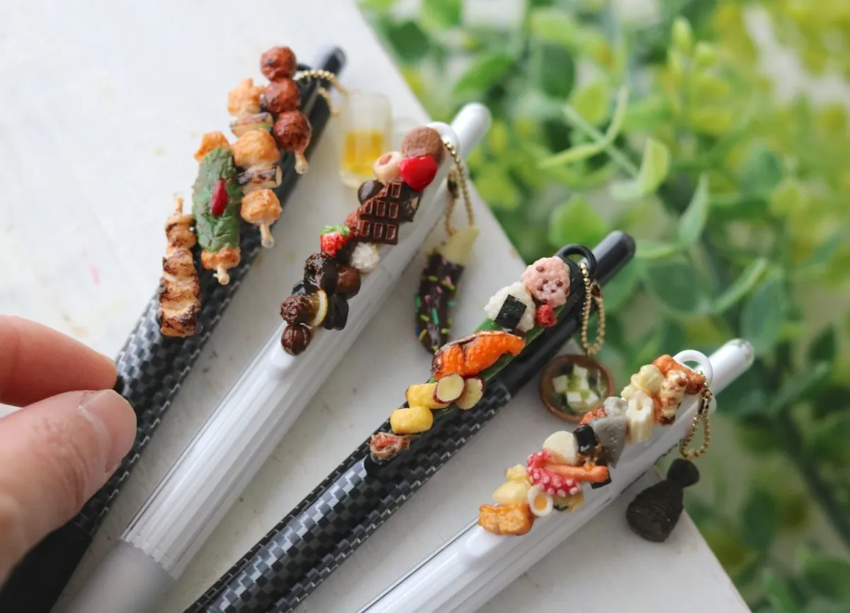 前回のイベントで特に人気を博したのが、ミニチュアボールペンシリーズです。これらは「アクセサリーは身につけにくいけれど、ボールペンなら気軽に使える」との声から、実用性と遊び心が融合したアイテムとして評価されています。餃子や納豆などの日本の伝統的な食べ物を模したボールペンは、ちょっとしたギフトとしても喜ばれること間違いなしです。
