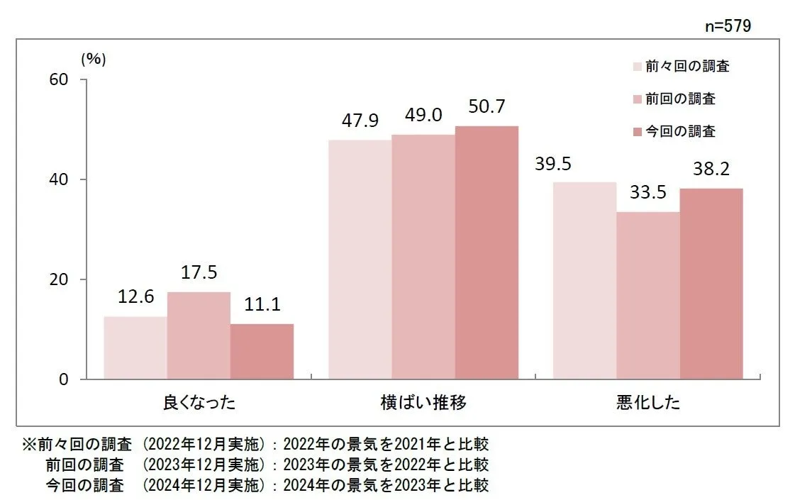 2024年の調査では、景気について「良くなった」と感じているのはわずか11.1%であり、