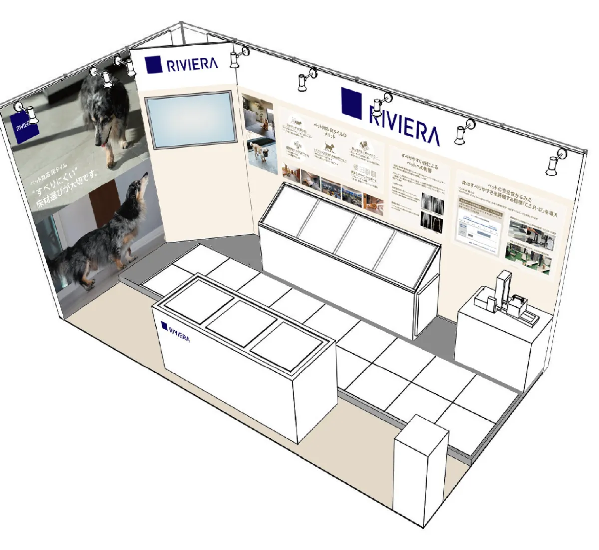 西ホールのブースAT-M01では、犬と一緒に楽しめるダイナミックな展示を準備。滑りによる関節への影響や、実際のタイルの優れた特徴を体験できる機会が提供されます。リビエラの技術とデザインが融合した新しいタイルの世界を是非体感してください。