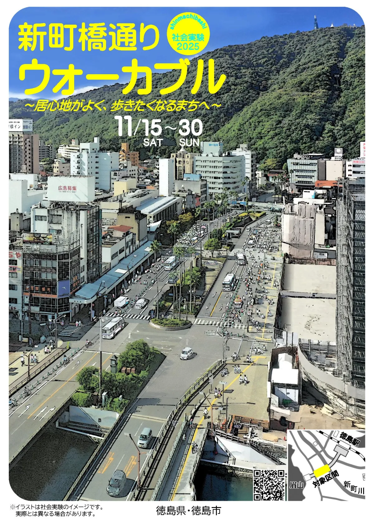 徳島県と徳島市が主導する新しい取り組みとして、居心地のよいウォーカブルな空間を提供するための社会実験が行われることが決定しました。この実験は、2025年に向けた地域の未来を考慮したものです。具体的には、車道の一部を歩道に転換し、訪れる人々が快適に過ごせるような滞留・にぎわい空間を創出することを目的としています。