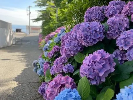 横須賀美術館に隣接する観音崎公園も、豊かな自然の中でアジサイを楽しめるスポットです。園内各所にはガクアジサイが自生するほか、パークセンター(鴨居4丁目1262)前では、観音崎公園オリジナルのアジサイ品種「汐音(しおん)」も鑑賞できます。海風にそよぐ「汐音」の姿は、この地域ならではの風情を感じさせます。