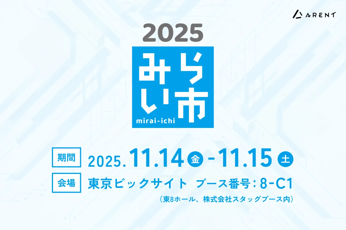 2025年11月14日(金)から15日(土)にかけて、東京ビッグサイトで開催される「みらい市 2025」に、株式会社Arentとその関連会社であるスタッグが共同で出展します。この展示会は、最新の技術や製品を紹介する場として多くの注目を集めており、Arentとしても初めての参加となります。