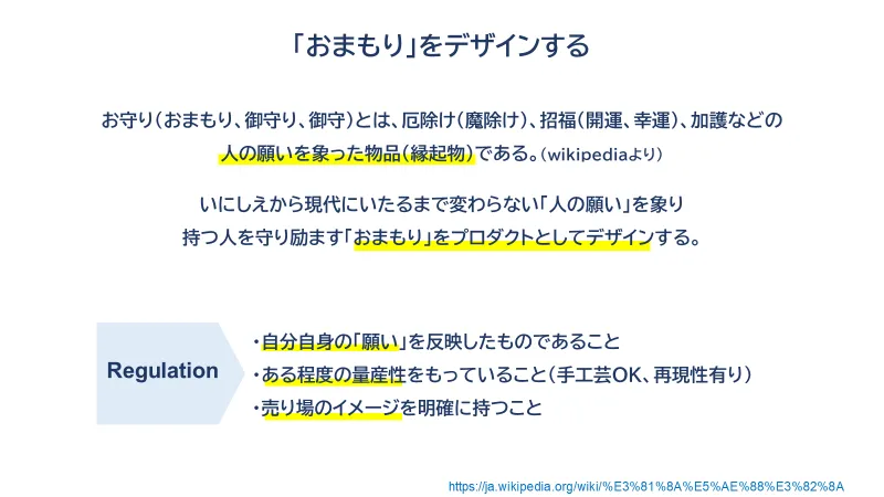 このプログラムの目的は、「祈りの文化を未来に繋げること」です。学生たちは、自身の願いや想いをおまもりのデザインに込み込み、社会に実装できる形で表現することを目指します。具体的には、量産化を意識したデザインや売り場のイメージを考えながら、実際に価値ある製品としての提案を行います。