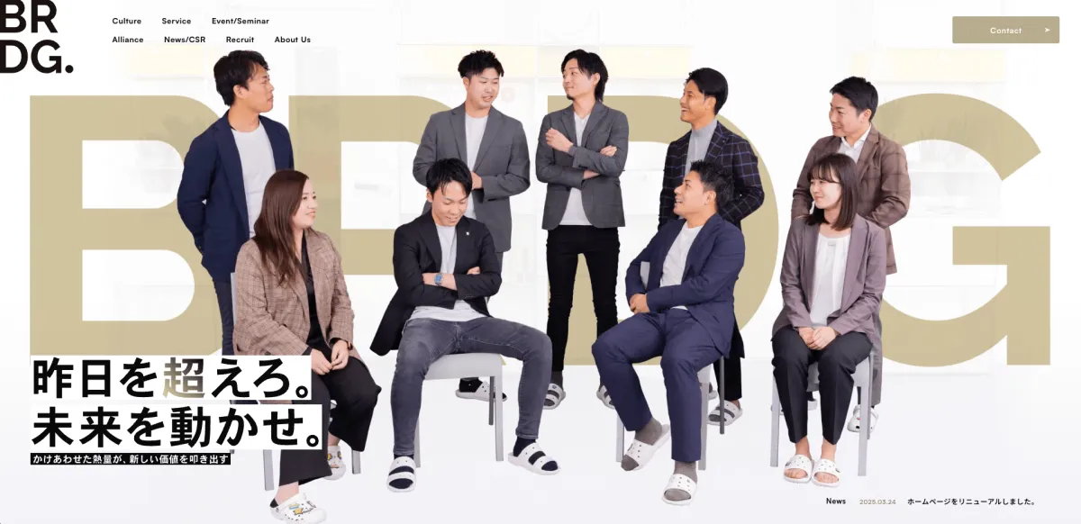 合同会社BRDG.は2025年3月24日にホームページを全面的にリニューアルしました。従来のサイトでは、ブランディング重視のあまり、お客様に対して具体的な情報提供が不十分でした。しかし、新たなサイトでは、会社の魅力や理念をしっかりと表現し、ユーザーに対して分かりやすくサービスを理解してもらえるようになりました。