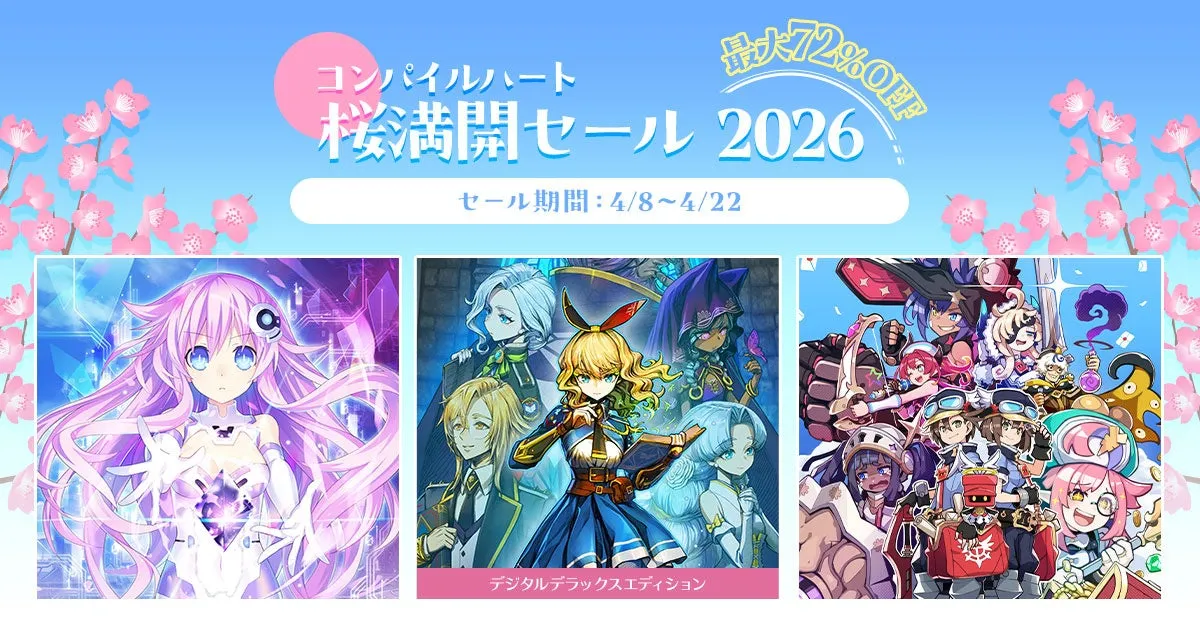 2026年4月8日より、コンパイルハートが『桜満開セール』を実施中です。このセールでは、ニンテンドーeショップやPlayStation®Storeにて、人気ゲームが最大72%OFFという大変お得な価格で提供されます。