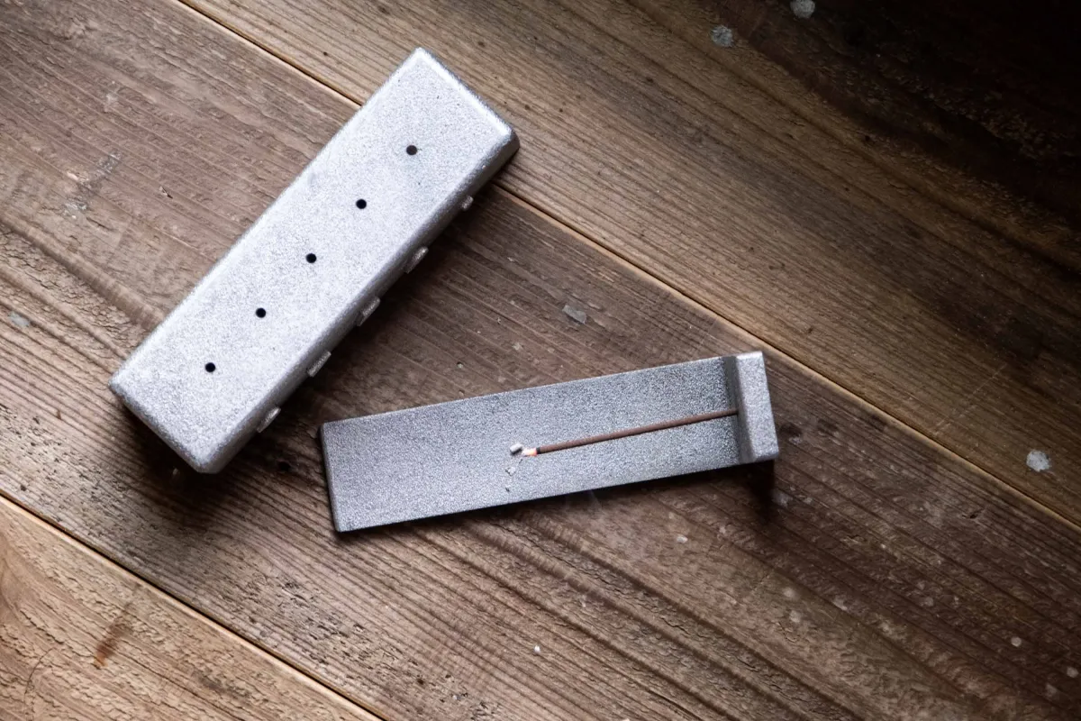 1982年に創業した村田木型製作所は、先代が培ってきた精密な木型製作技術を基に、新たな製品開発に挑戦しています。国内で木型事業所が減少する中、同社はその技術を利用して、一般消費者向けのライフスタイル製品開発に着手しました。「お香や線香を使いたいが、火の始末や灰の飛散が心配で諦めていた」という消費者の声に応えたこの商品は、安全性とデザイン性を兼ね備えています。