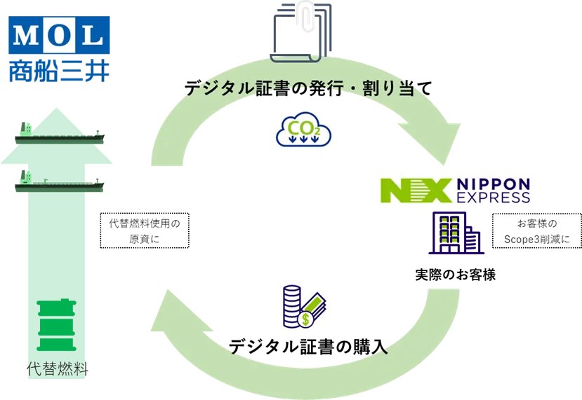特に、新たに始まる「NX-GREEN Ocean Program」は、商船三井が運航する船隊において実施された特定の低炭素航海の環境属性とデジタル証書を、NXグループが調達し、お客様へ提供します。これにより、企業は自社の排出量削減に取り組むことが容易になります。