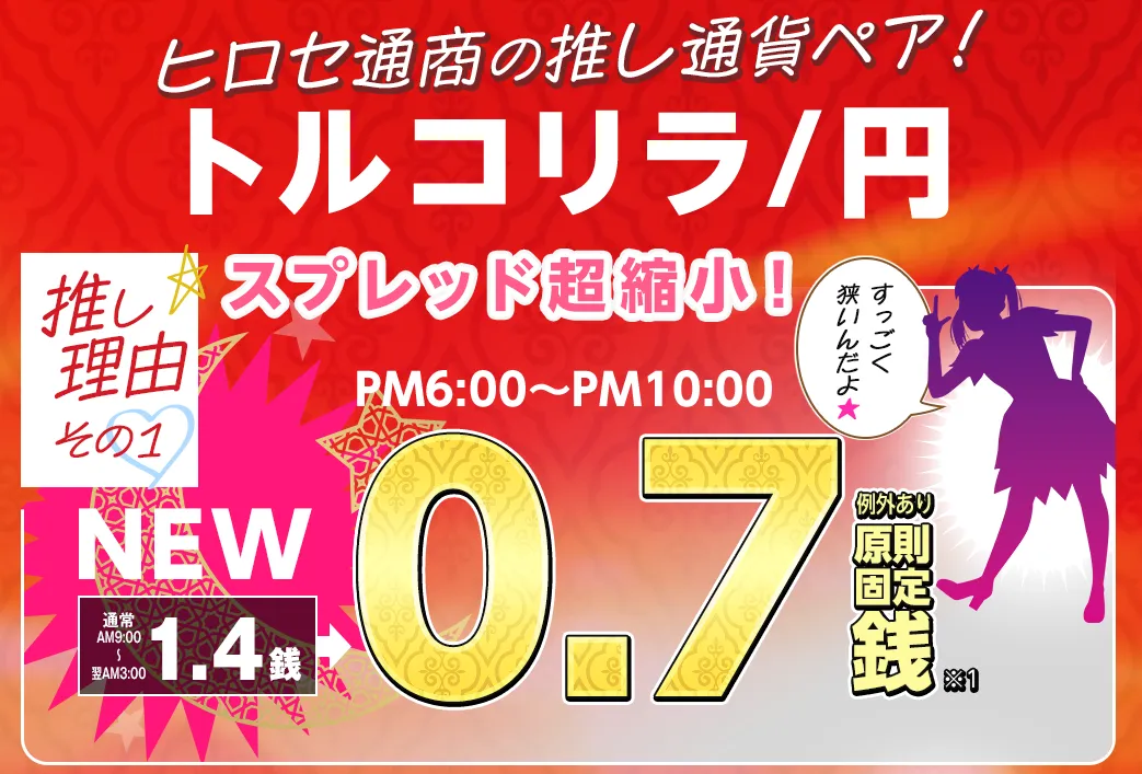 ヒロセ通商、LION FXにおけるトルコリラ/円のスプレッド縮小