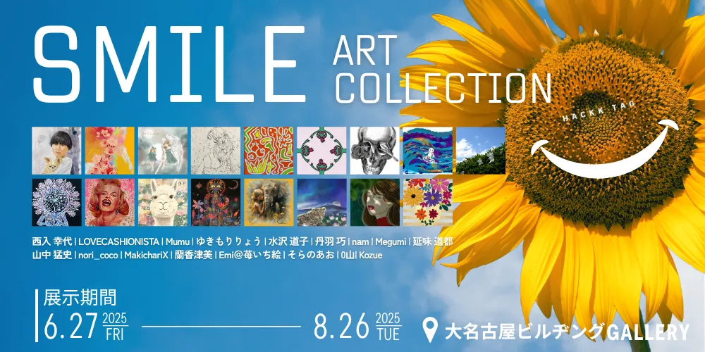 株式会社IDEABLE WORKSが、名古屋市に位置する大名古屋ビルヂングの5階に設置したギャラリー「大名古屋ビルヂング GALLERY」で、『SMILE COLLECTION』展示がスタートしました。この展示は、夏の日差しに映えるひまわりからインスパイアを受けた作品をテーマに公募され、17名のアーティストによる独自の視点で紡がれたアートが並びます。
