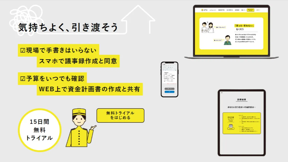 家づくりの現場においては、何度も打ち合わせを重ねることが一般的です。そのため、議事録の重要性は非常に高くなります。rooTreeの新しい電子同意機能は、打ち合わせの効率化とトラブル防止に寄与します。15日間の無料トライアルを通じて、ぜひこの便利なサービスを体験し、自分自身の家づくりに役立ててみてはいかがでしょうか。