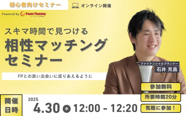 この機会に、気軽にFPと相談できる「相性マッチングセミナー」にぜひご参加ください!