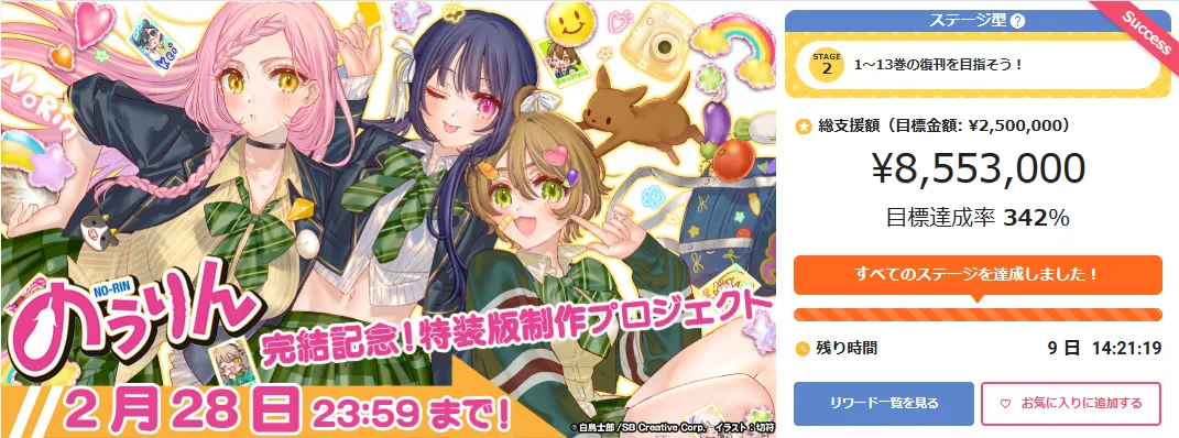 2023年の初頭、ファンの期待を超えるニュースが飛び込んできました。人気作品『のうりん』が1巻から13巻まで復刊されることが、株式会社アニメイトが運営するクラウドファンディングサービス「ソレオス」で進行中のプロジェクトによって決定しました。タイトルの完結を記念する特装版制作プロジェクトは、わずか数時間で目標金額を達成し、その後も追加の目標を次々と達成。また、850万円を超え、限定版の復刊が具体化したのです。