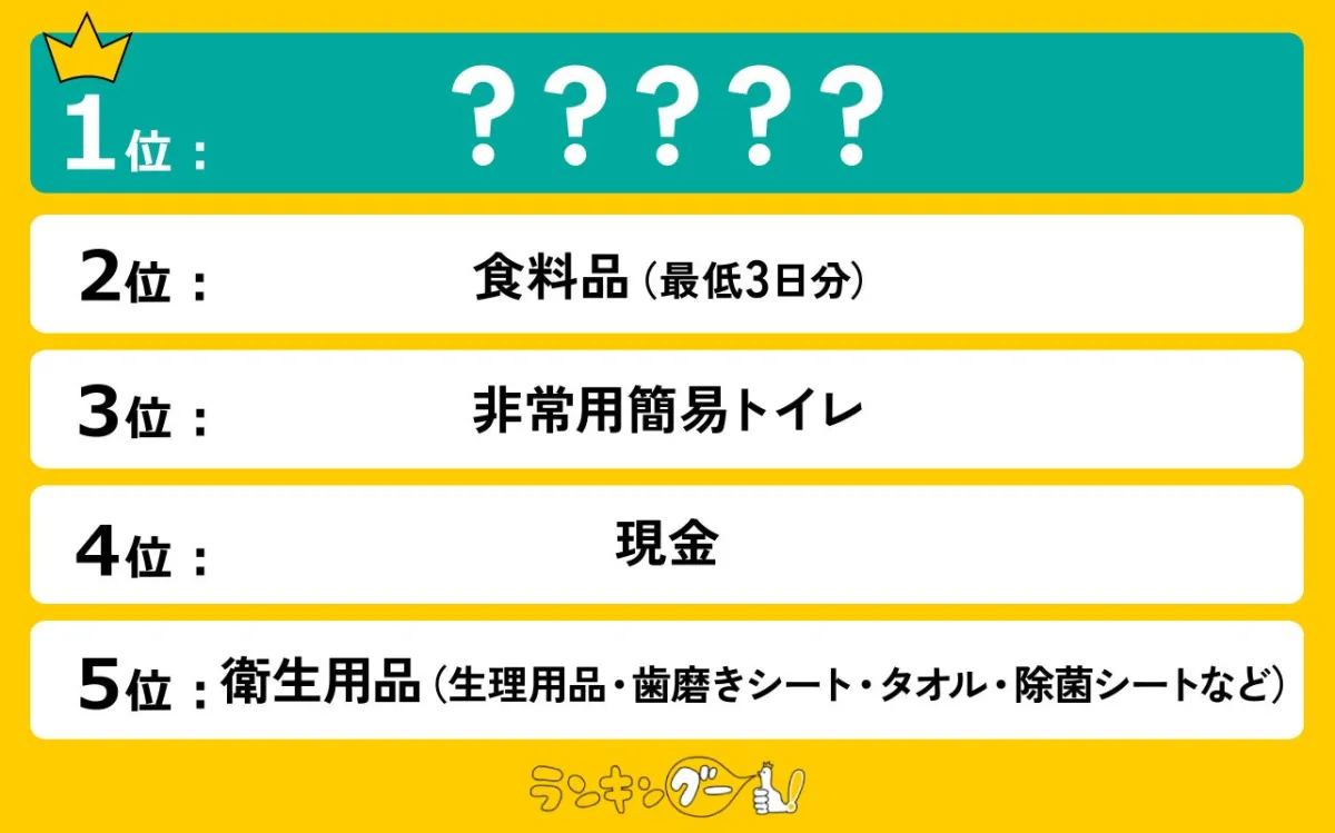続いて第3位には非常用簡易トイレが入りました。票数は999票。多くの方が、「トイレが一番困ると聞いているから」というコメントを残しており、予期せぬ環境下では衛生管理が特に重要であることが示されています。