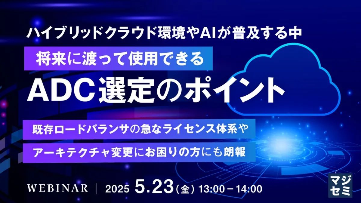 今後もAIやエッジコンピューティングの進展により、ハイブリッドクラウドが主流となることは間違いありません。選定したADCが長期にわたってビジネスに貢献するかどうか、その判断は非常に重要です。本セミナーを通じて、皆さまのビジネスにとって最適なADC選定の手助けとなることを期待しています。参加をお待ちしております。