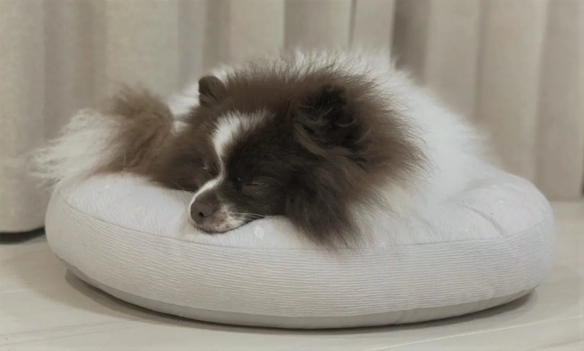 この寝具の最大の特徴は、まるで雲の上で眠っているかのような「もちもち感」。その秘密は、伸縮性のあるニット生地と中綿にあります。ペットを優しく包み込むことで、リラックスした状態で安眠を促します。