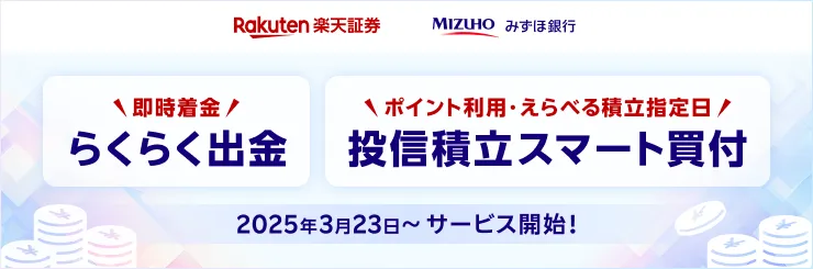 楽天証券株式会社とみずほ銀行は、両者の口座連携を一層強化することを発表しました。この取り組みの一環で、2025年3月23日から、みずほ銀行に対する円貨の出金が即時に実行できる「らくらく出金」サービスが追加されます。また、「スマート買付」サービスも新たに導入され、入金手続きをせずに、みずほ銀行の口座を使って楽天証券での取引がスムーズに行えるようになります。さらに、今回のサービスにより、円貨および外貨(米ドル)の出金や積立が手数料無料で可能になります。