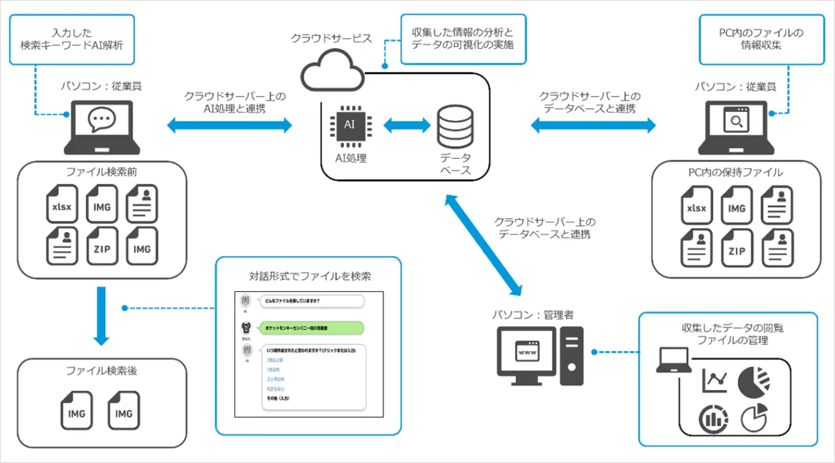 対話型ファイル検索機能: ユーザーはAIを活用した対話形式でファイル検索が行えるため、必要な情報へさらに迅速にアクセスできるようになります。これにより、業務効率が劇的に向上します。