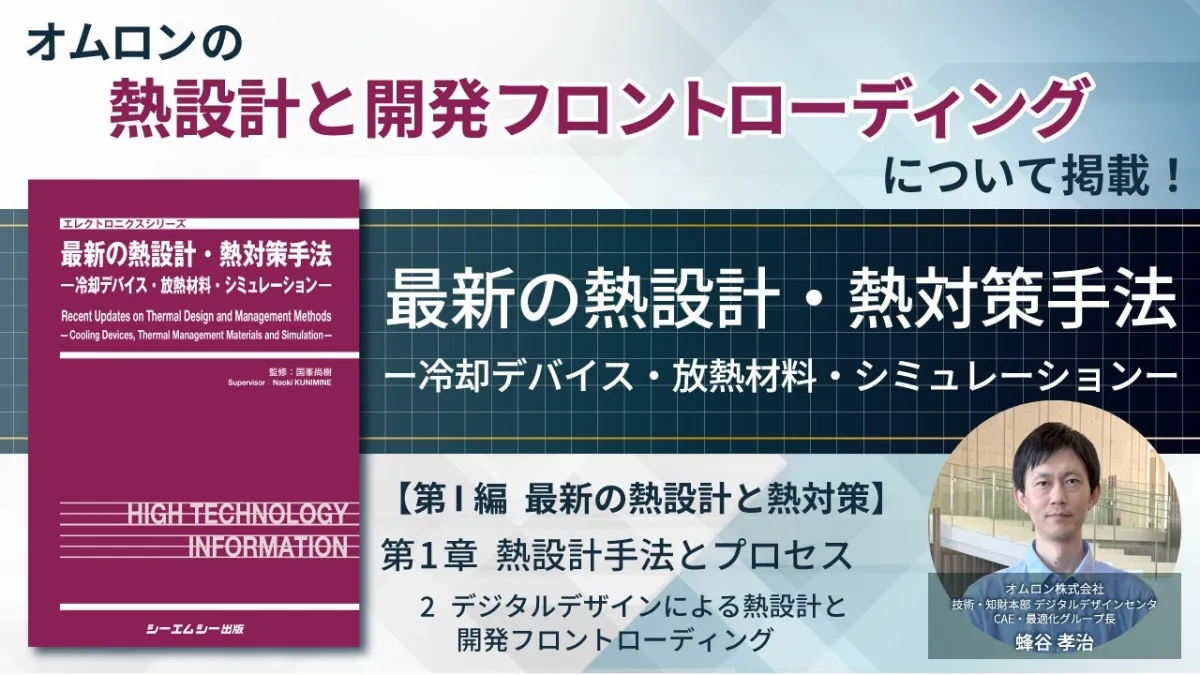 2025年7月31日に発刊される書籍『最新の熱設計・熱対策手法 —冷却デバイス・放熱材料・シミュレーション—』は、最新の冷却テクノロジーや放熱材料、シミュレーション手法について深く掘り下げています。特に注目すべきは、オムロンの技術専門家である蜂谷孝治が執筆した技術解説が本書に収められている点です。彼は、技術・知財本部 デジタルデザインセンタのCAE・最適化グループ長として、オムロンが推進する熱設計と開発フロントローディングに関する重要な知見を共有しています。