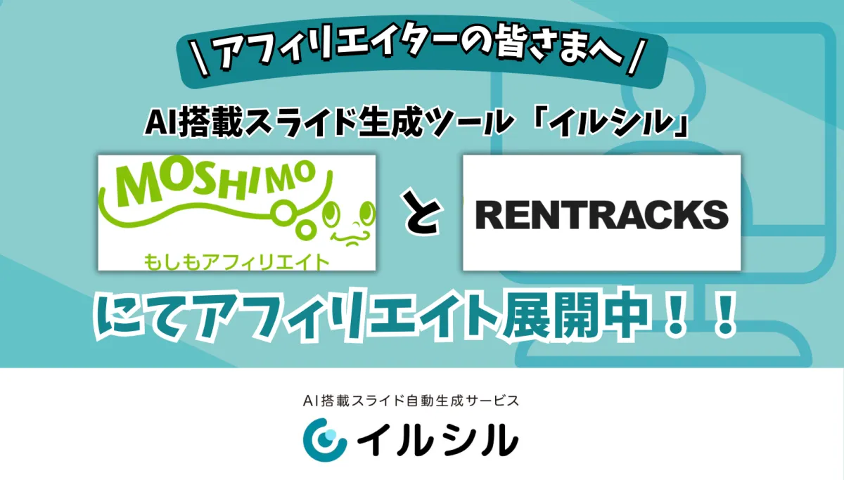 AI技術を使用したスライド自動生成サービス「イルシル」は、資料作成の手間を減らし、ビジネスの効率を高めるユニークなツールです。特に、「もしもアフィリエイト」や「レントラックス」といったプラットフォーム上で展開されるアフィリエイトプログラムは、多くのメディアや個々のアフィリエイターに好評を博しています。